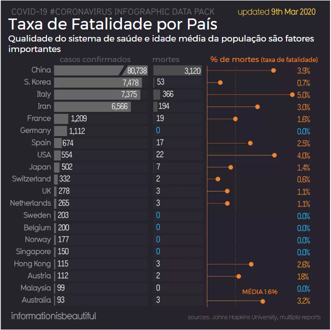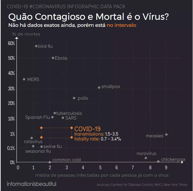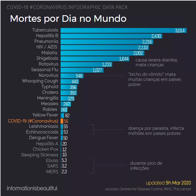 O COVID-19, também conhecido como Coronavirus, é o assunto do momento e cada hora surge uma notícia nova. Apesar de ter uma taxa de mortalidade menor do que muitas outras doenças, como tuberculose, esse é o foco da mídia!